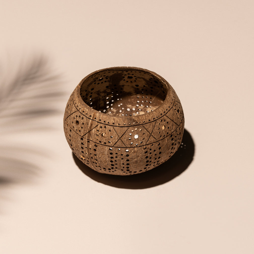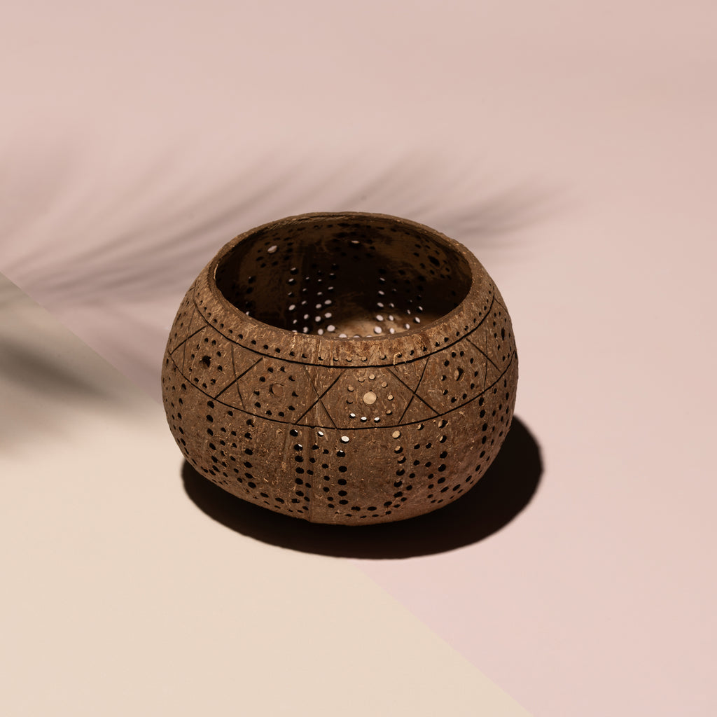 Elke kokosnoot heeft zijn eigen vorm en kleur, waardoor geen twee houders precies hetzelfde zijn. Perfect voor op tafel, in de tuin of als sfeervol detail in je interieur.
