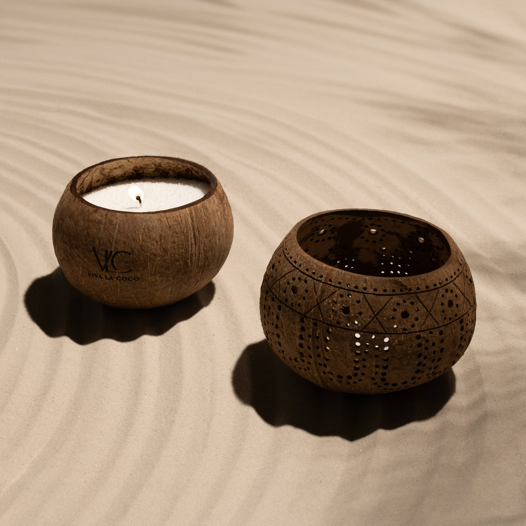 Creëer een warme, natuurlijke sfeer met deze stijlvolle kokosnoot-houder voor waxinelichtjes. Gemaakt van echte halve kokosnoten, zorgvuldig schoongemaakt en afgewerkt voor een authentieke, tropische uitstraling.